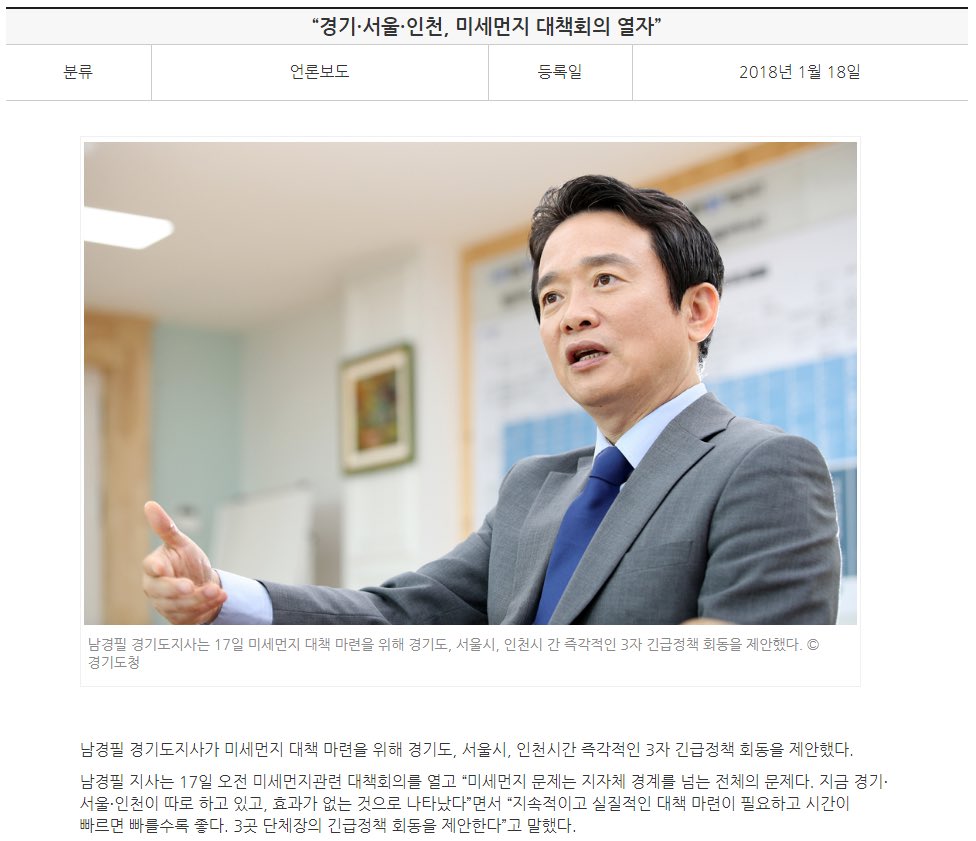 정부.지자체 연정으로 중소상공인 피해구제 나서자, 경기.서울.인천 미세먼지 대책회의 열자고 제안한 남경필,, 박원순 옆에서 하나도 어색하지가 않음