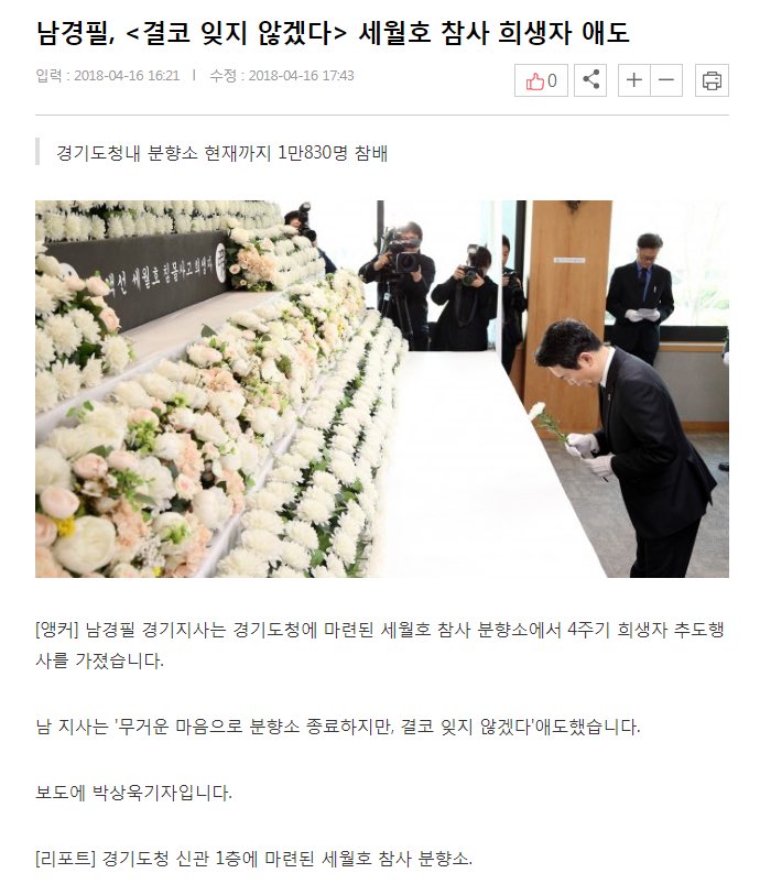 2014년 4월 28일, 세월호 참사 직후, 경기도청에 세월호 분향소를 설치, 그 합동분향소를 2018년 4월까지 4년간 유지함.