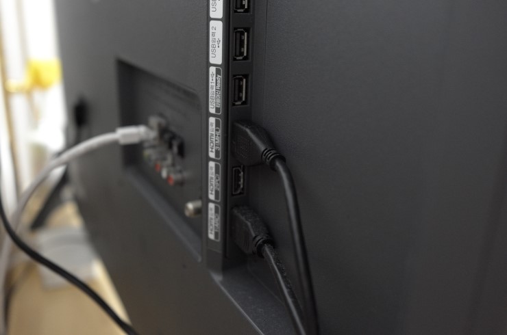 본체와 티비 모니터가 연결되는 방금꽂은 HDMI케이블과